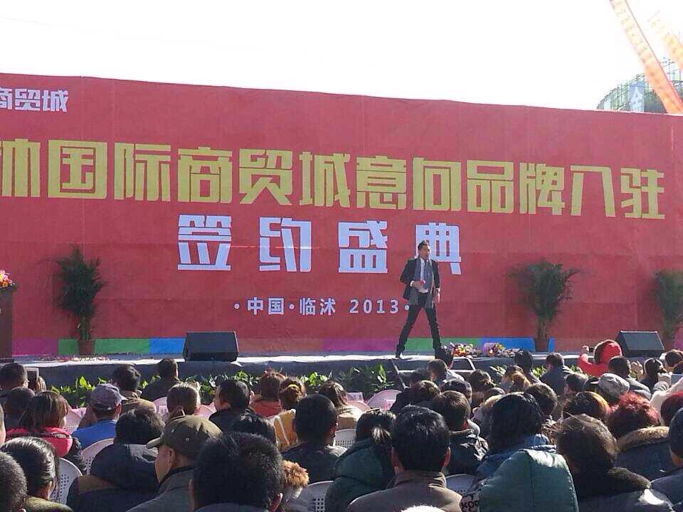 2013年12月10日,山東臨沭奧林國際商貿(mào)城通過我司嘉華明星經(jīng)紀公司成功邀請臺灣歌手文章、高勝美,出席奧林國際商貿(mào)城意向品牌入駐簽約盛典。臺灣歌手文章帶來經(jīng)典歌曲的同時,也在主辦方領導的陪同下,參觀商貿(mào)城的沙盤。