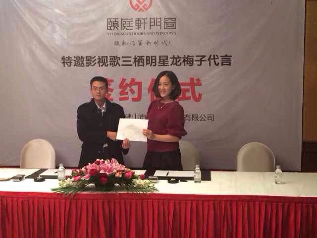 經(jīng)過嘉華明星演出公司專業(yè)團隊的努力,2013年12月26日,我司攜歌手龍梅子抵達北京昆侖飯店,正式簽約龍梅子擔任佛山頤庭軒門窗有限公司形象大使。
