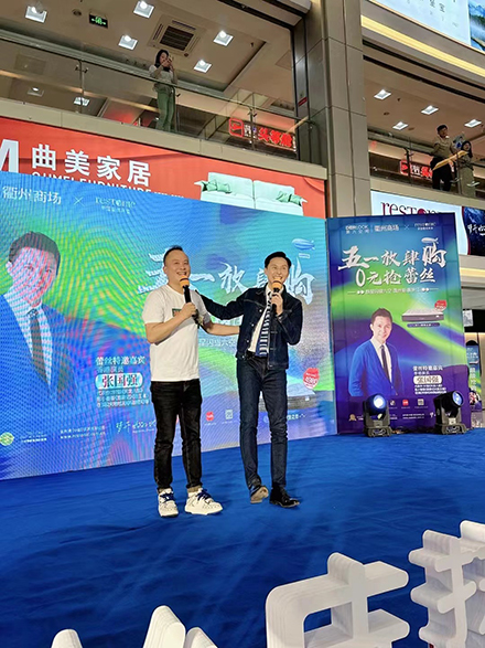 2023年5月3日,嘉華明星經紀公司攜手張國強抵達衢州站,出席Restonic蕾絲床墊五一放肆購FUN,心好睡眠活動。