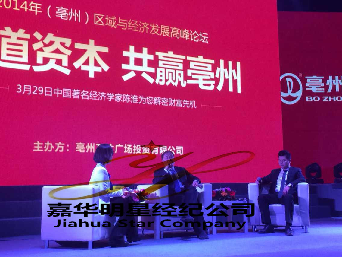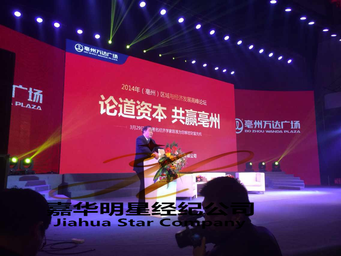 3月29日,亳州萬達通過嘉華明星經紀公司邀請著名經濟學家陳淮出席2014年亳州區域與經濟發展高峰論壇。