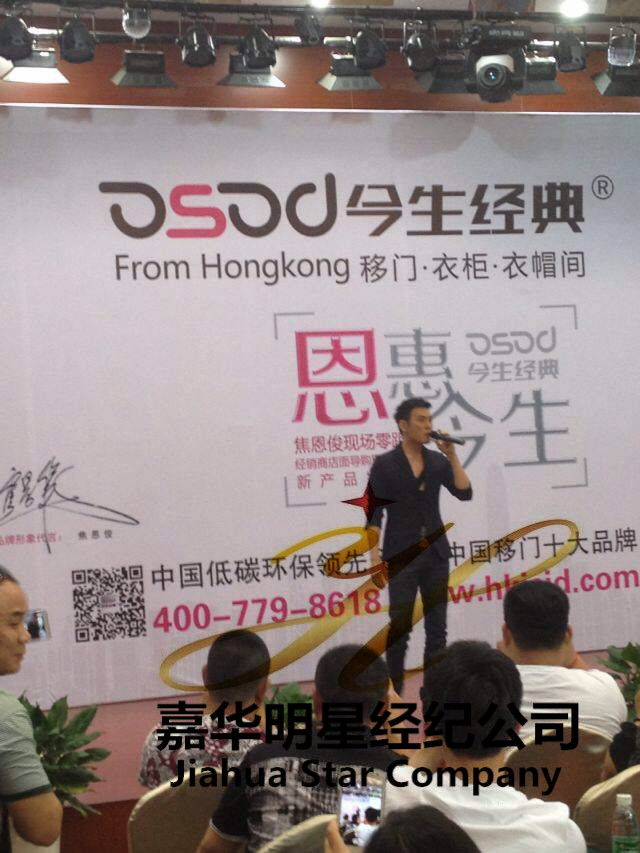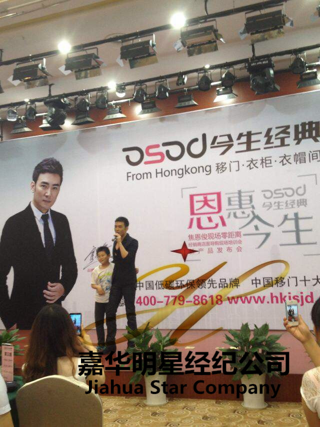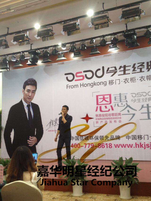 5/29 嘉華明星經紀公司安排焦恩俊出席南京今生金典新品發布會。