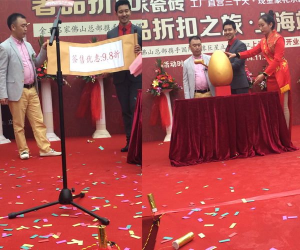 11月30日,嘉華明星經紀公司攜國際偶像巨星立威廉見證上海旗艦店開業盛惠。當天下午金玉名家瓷磚奢品折扣之旅首站在上海正式拉開帷幕!,章氏企業董事長章云樹帶領參會嘉賓在金玉名家品牌營銷中心內,共同品鑒了代表著最新奢適生活理念的臻美精品。不少經銷商表示,此次活動中展出的新品,不僅在原有的奢華基調上融入了時尚元素與藝術美感,而且金玉名家廠家在優惠力度上做出了空前讓利,在終端市場吸引更多消費者的青睞。