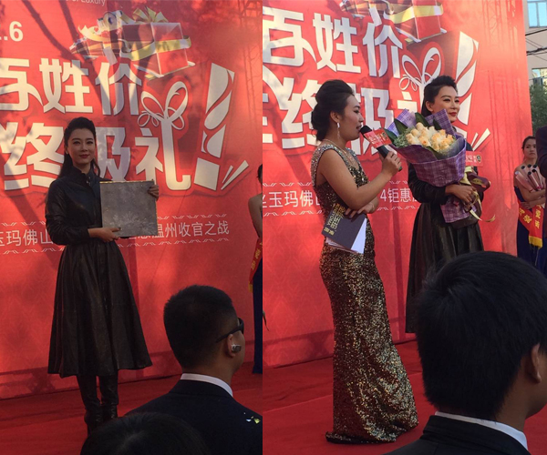 當(dāng)天下午,電視劇女王陳數(shù)以一襲黑色長(zhǎng)裙驚艷亮相,舉手投足間盡顯十足女王范!引來(lái)粉絲團(tuán)瘋狂追逐吶喊!陳數(shù)優(yōu)雅回應(yīng)現(xiàn)場(chǎng)觀眾的熱情并親切問(wèn)候大家,隨后其手持金絲玉瑪產(chǎn)品向臺(tái)下觀眾大方展示,耀眼的產(chǎn)品與高貴的女王共同演繹著頂級(jí)奢華風(fēng)!