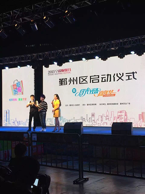嘉華娛樂訊:7月24日晚,嘉華明星經紀公司經紀人攜中國好聲音歌浴森出席寧波購物節暨啤酒節開幕式活動。