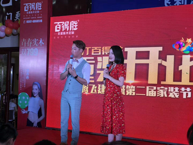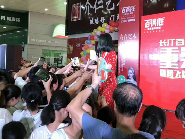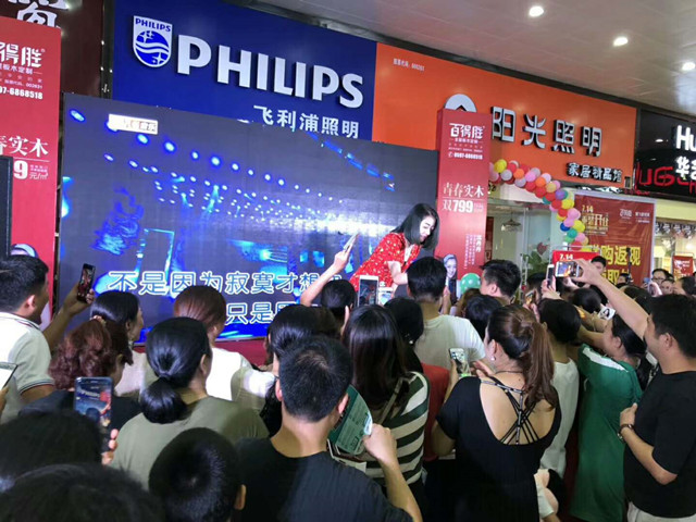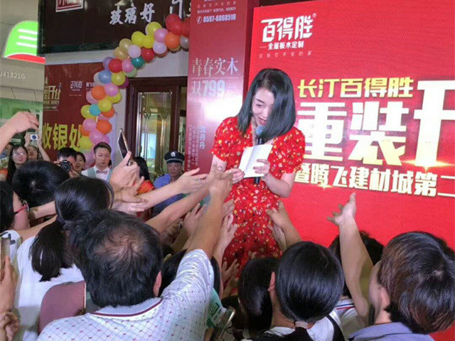 沈丹丹成名于2007年,孔雀唱片TRY組合成員之一,她有著多重身份,除了唱歌她還涉足影視表演、舞蹈音樂劇等專業。其音樂代表作有《幸福戀人》《不是因為寂寞才想你》《不要在我寂寞的時候說愛我》等經典曲目。沈丹丹在龍巖百得勝家具活動現場演唱了成名曲,引起了現場粉絲的一眾歡呼。