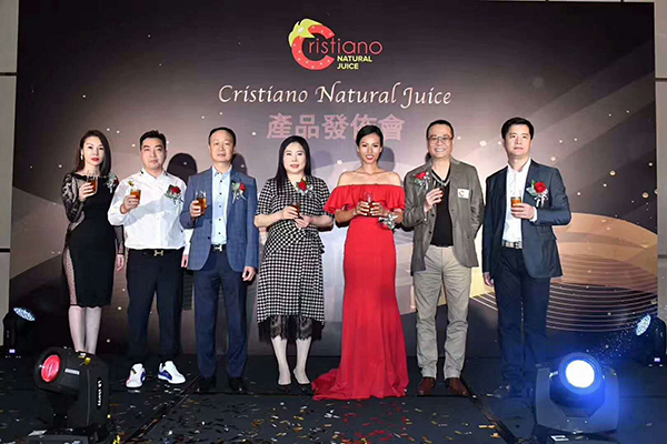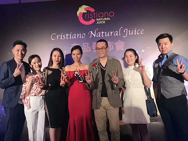 圖為歐陽震華與Cristiano Natural Juice管理層合影